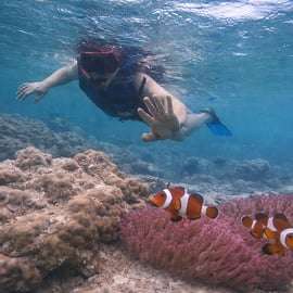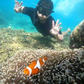 Profitez d'une visite guidée privée de plongée en apnée aux îles Batam au départ de Singapour. Faites de la plongée avec masque et tuba dans les eaux claires, observez les poissons colorés et profitez d'une variété d'activités.
