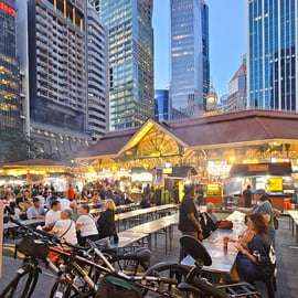 Un délicieux dîner vous attend au célèbre Lau Pa Sat, un centre historique de restauration datant de 1824. Nous dînerons en plein air, sous les étoiles, et dégusterons quelques-uns des célèbres plats de rue de Singapour, parmi lesquels le satay et le riz au poulet hainanais, un plat national favori.