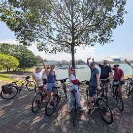 L'excursion à vélo débute par une promenade tranquille à travers un magnifique parc au bord de l'eau. En vous dirigeant vers les lieux d'intérêt populaires de Marina Bay, découvrez des vues à couper le souffle sur la ville. Vous aurez également l'occasion rare de pédaler sur le circuit de Formule 1 et de faire une course amicale avec vos amis !