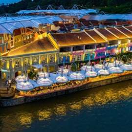 Votre dernier arrêt se fera à Clarke Quay Riverside, un quartier dynamique au bord de l'eau, réputé pour ses lumières colorées, ses ponts coloniaux, ses bars en plein air et son ambiance nocturne animée. Faites une courte promenade le long de la rivière, savourez une boisson ou imprégnez-vous simplement de l'énergie de Singapour la nuit avant de rentrer.