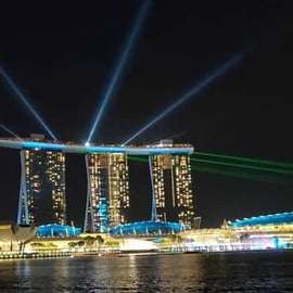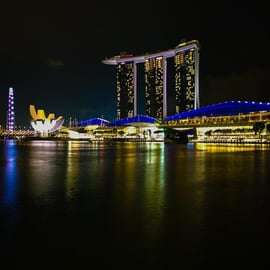 Visitez le SkyPark de Marina Bay Sand, un complexe intégré situé face à Marina Bay à Singapour. Admirez une vue à 360 degrés de la ligne d'horizon illuminée de Singapour jusqu'aux îles indonésiennes Riau.
